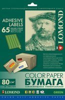 зелёная самоклеящаяся бумага для этикеток, A4, 65 шт. (38 x 21.2 мм), 80 г/м2, 50 листов