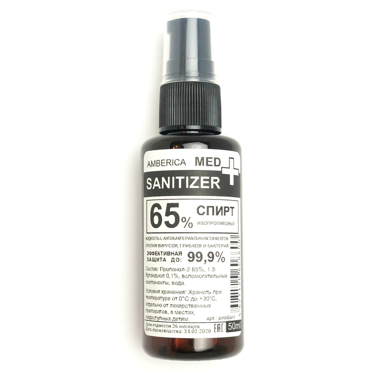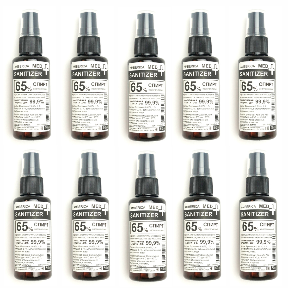 - Комплектация 10 флаконов с дозатором по 50 мл, Санитайзер Амберика