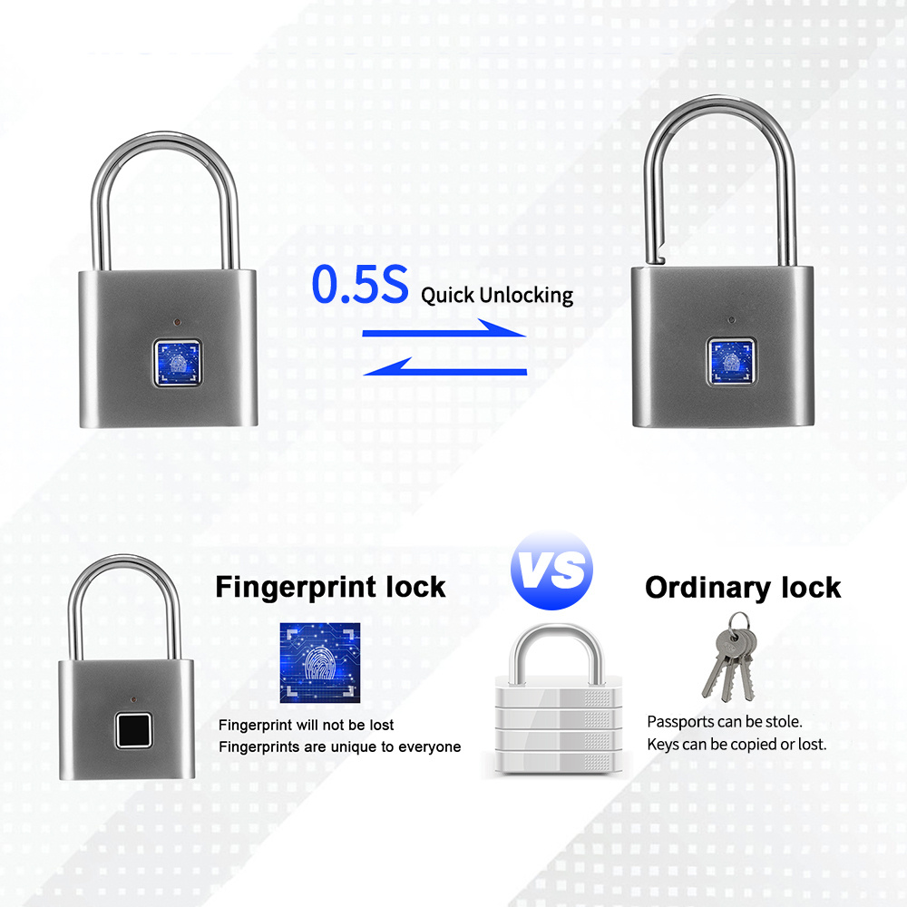 Смарт-отпечаток пальца навесной замок серебристый