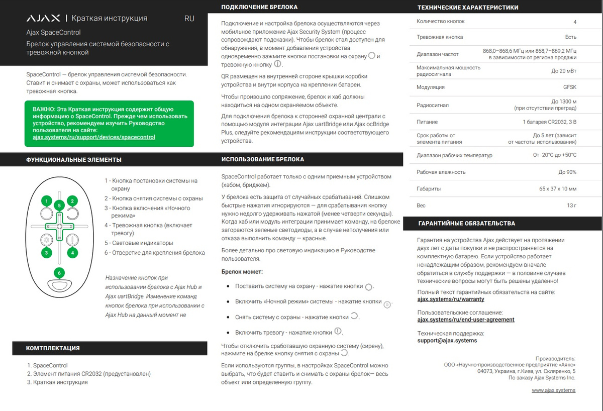 Охранная система для дома или дачи Ajax SpaceControl, черный