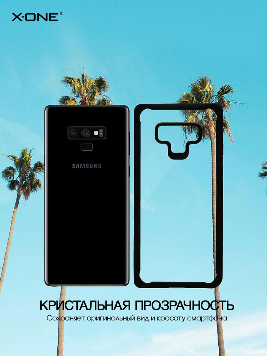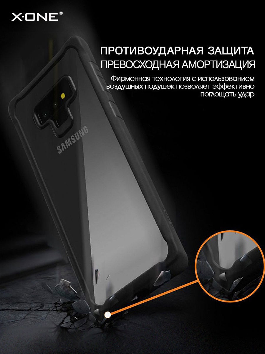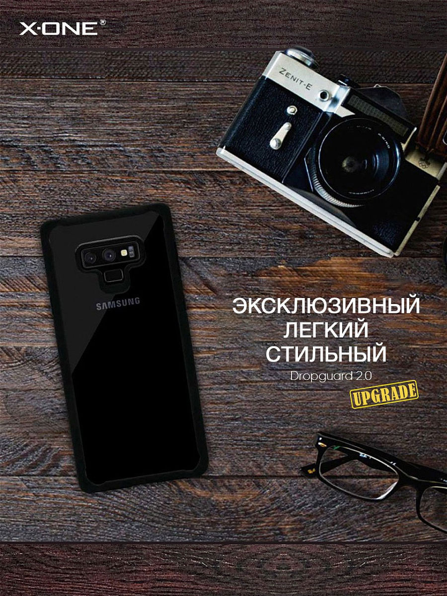 Чехол для Samsung Galaxy S9+ X-ONE DropGuard 2.0 Прозрачный с черным матовым бампером Противоударный