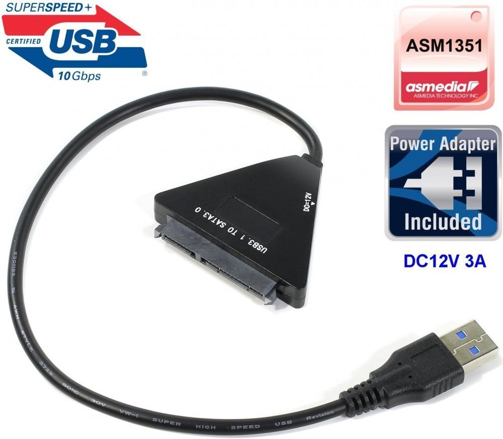 переходник USB 3.1 - SATA 3.0 SSD/HDD 2.5"/3.5", с БП 12В/3А, кабель подключения USB Type-A