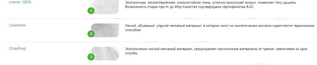 • Наполнитель объемный нетканый материал (синтепон)