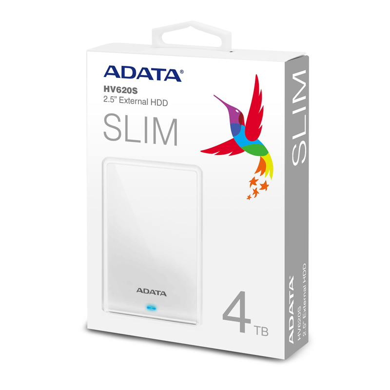 Внешний диск HDD ADATA - HV620S, 4 ТБ, 2.5", USB 3.1, Питание по USB, белый, AHV620S-4TU31-CWH