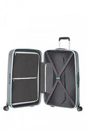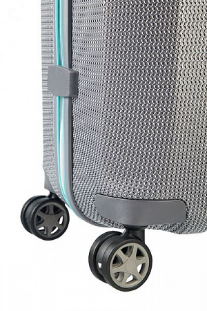 Сделано из двухцветного поликарбоната, ламинированного сетчатым материалом для прочности и устойчивости к царапинам. Двухсторонняя молния с современной цветной отделкой и замок с функцией TSA. Двойная выдвижная ручка и двойные колеса с плавным ходом. Функциональный интерьер: разделитель с карманом на молнии, навесной карман, а также перекрестные ремни с более низкой фиксацией для эффективной упаковки.