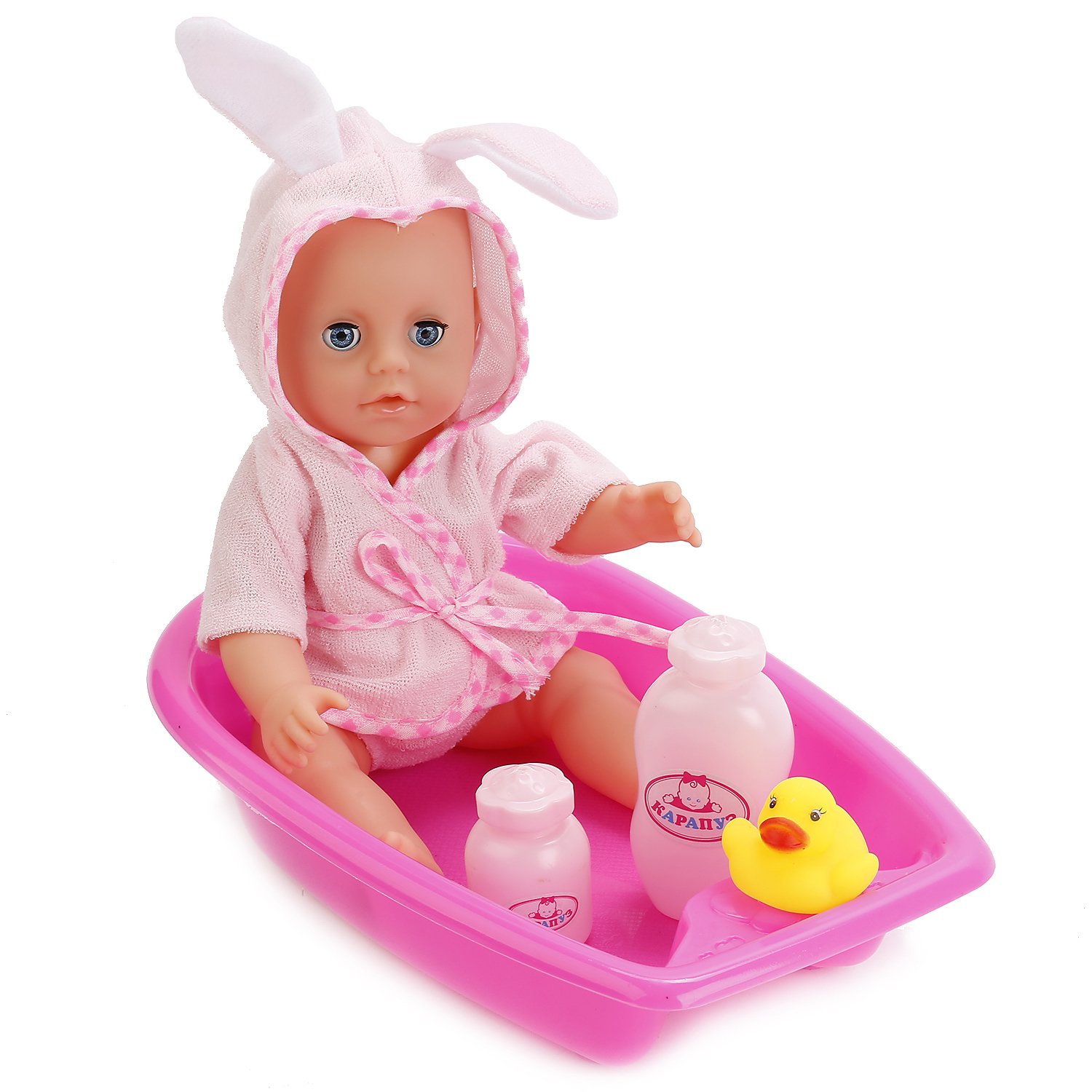 Пупс Карапуз интерактивный 3 функции в розовом халатике Зайчик 241240