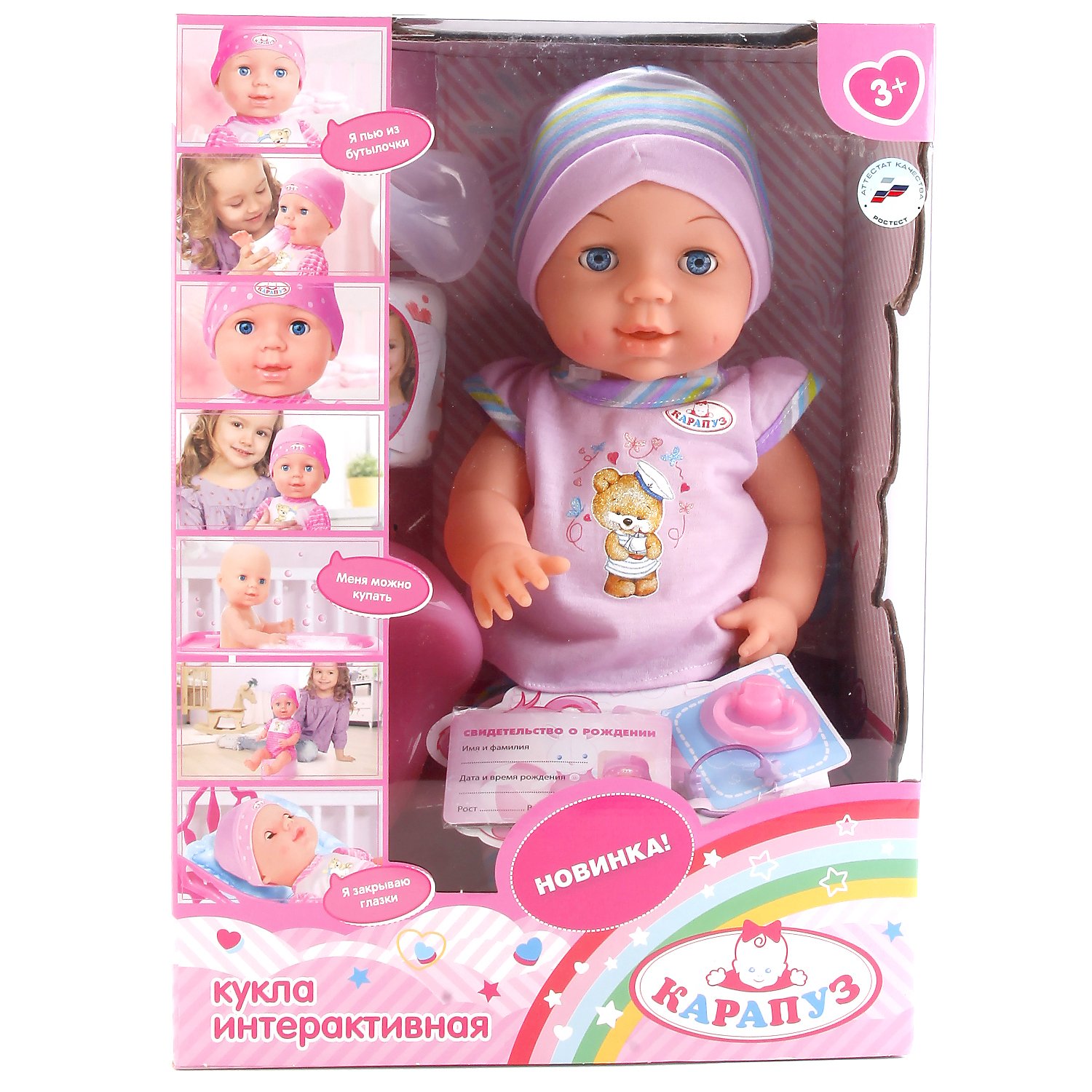 Пупс Карапуз интерактивная в фиолетовом костюме (Y40DP-BR-RU) 222478