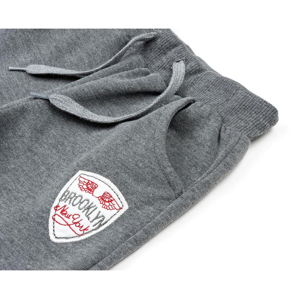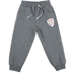 Затишні штани темно-сірого кольору на манжетах, з двома прорізними кишенями, так само прикрашені у верхній частині нашивкою з елементів аплікації, що перегукується з аплікацією зі світшота. Еластичний пояс і манжети в подвійну трикотажну «гумку» забезпечать затишок і оптимальну посадку по фігурі. Пояс додатково посилений вставленою всередину широкою «гумкою». Шнурок декоративний.Тканина на дотик оксамитова, дуже приємна.