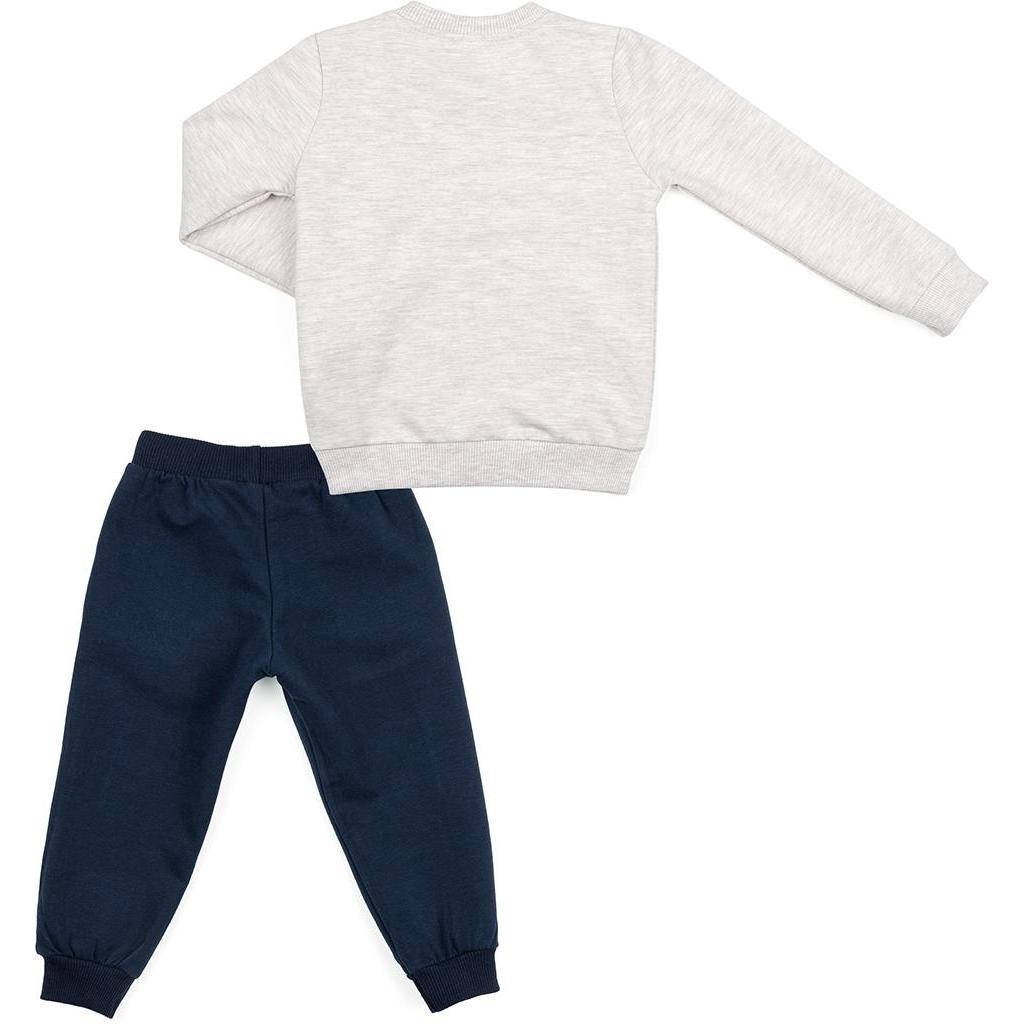 Модний і яскравий костюм для дівчинки в стилі «спортивний шик»: світшот бежевого меланжевого кольору і темно-сині штанці. Костюм зшитий з якісного двуниточного турецького трикотажу на основі натуральної бавовни, з додаванням невеликого % еластану для підтримки форми вироба. Тканина дуже приємна, бархатиста на дотик.