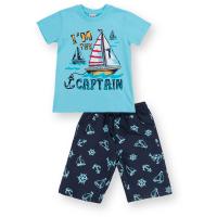 Чудовий, яскравий літній комплект відмінної якості для активної, веселої, непосидючої дитини: футболка кольору лайма і темно-сині шорти-бермуди. Комплект виконаний з тонкого, дихаючого, бавовняного турецького трикотажу, м'якого і приємного на дотик - 100% бавовна .