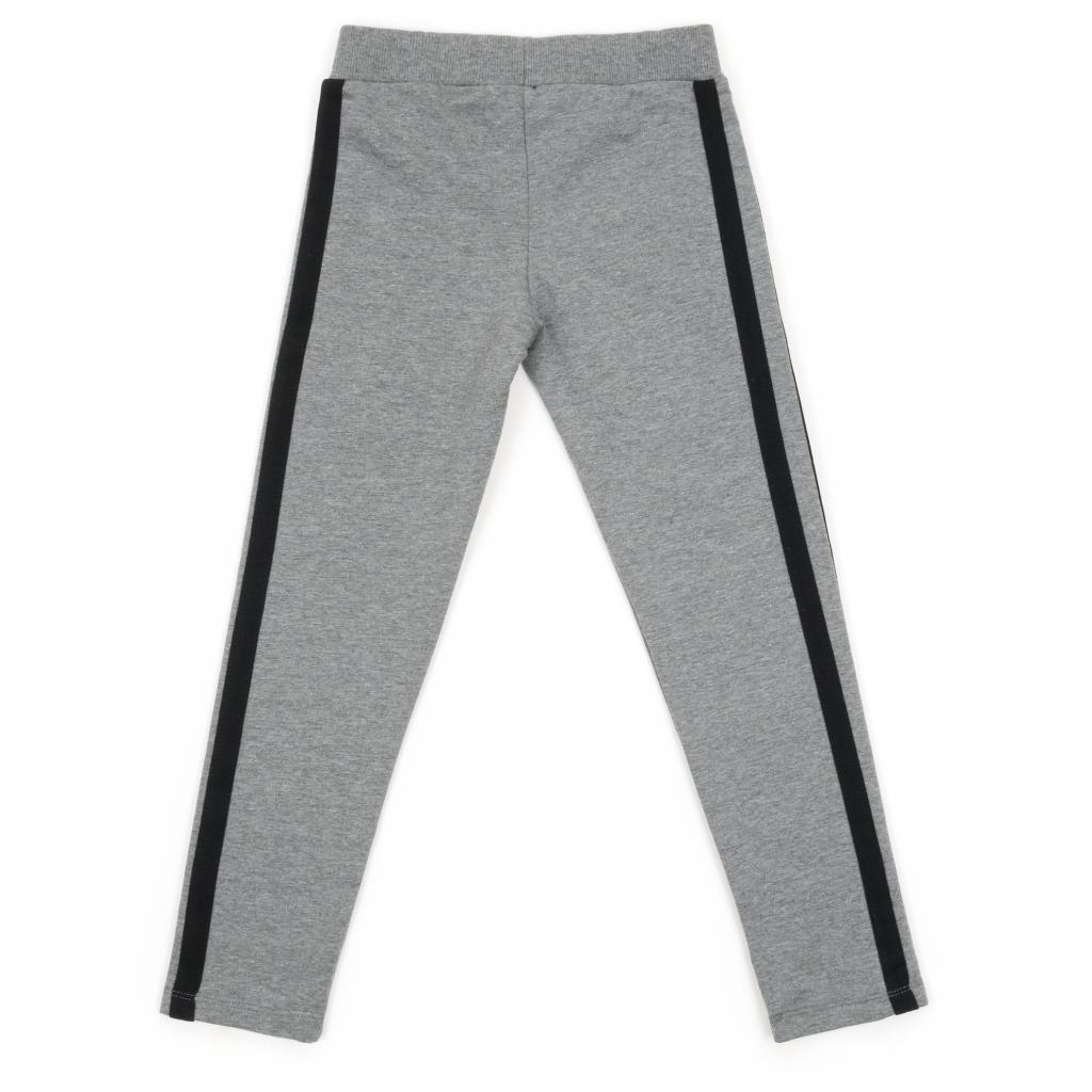 Модні, зручні лосини з еластичним поясом з подвійної трикотажної «гумки» забезпечать оптимальну посадку по фігурі. Пояс посилений додатково вставленою всередину широкою гумкою. Лосини прикрашені по бічній лінії настроченими лампасами чорного кольору.