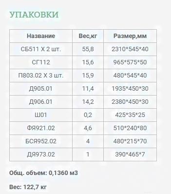 • Форма поставки в разобранном виде