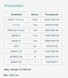 • Вес 122.7 кг (в упаковке)