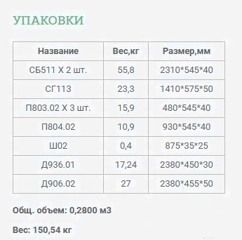 • Форма поставки в разобранном виде