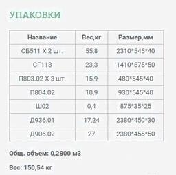 • Вес 150.54 кг (в упаковке)