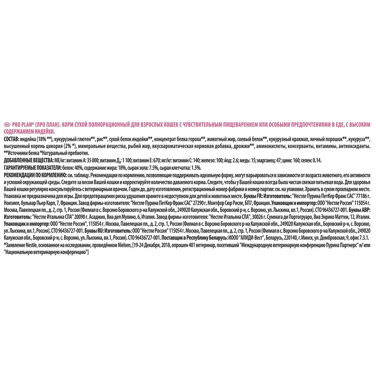 Корм сухой для кошек PROPLAN 200г с индейкой с чувствительным пищеварением 75549