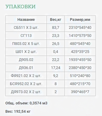 • Вес 192.54 кг (в упаковке)