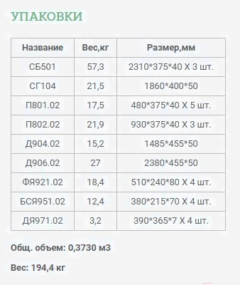 • Вес 194.4 кг (в упаковке)