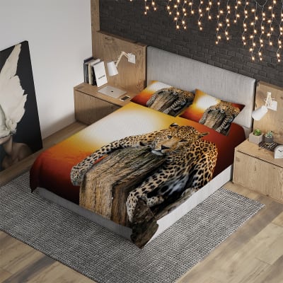 Комплект покрывала с наволочками «Леопард на закате» евро, жаккард