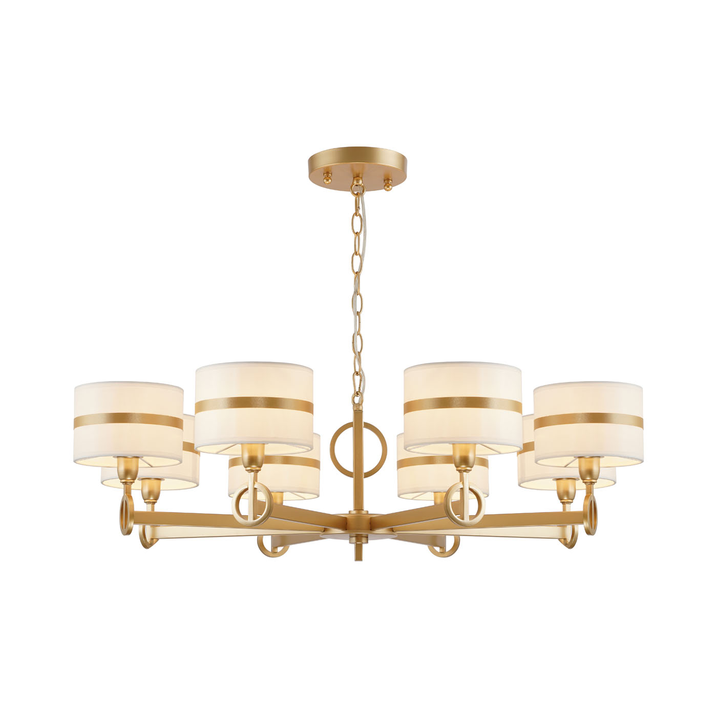 - Плафоны из ткани, которую украшает золотая атласная тесьма