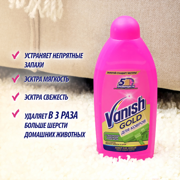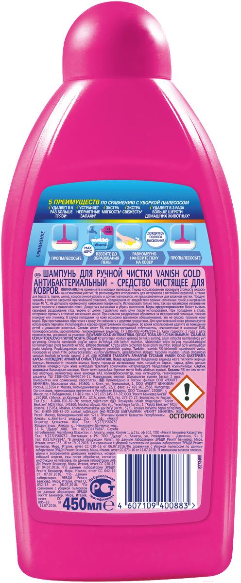Чистящее средство для ковров и текстиля Vanish Gold Антибактериальный для ручной чистки (450мл)