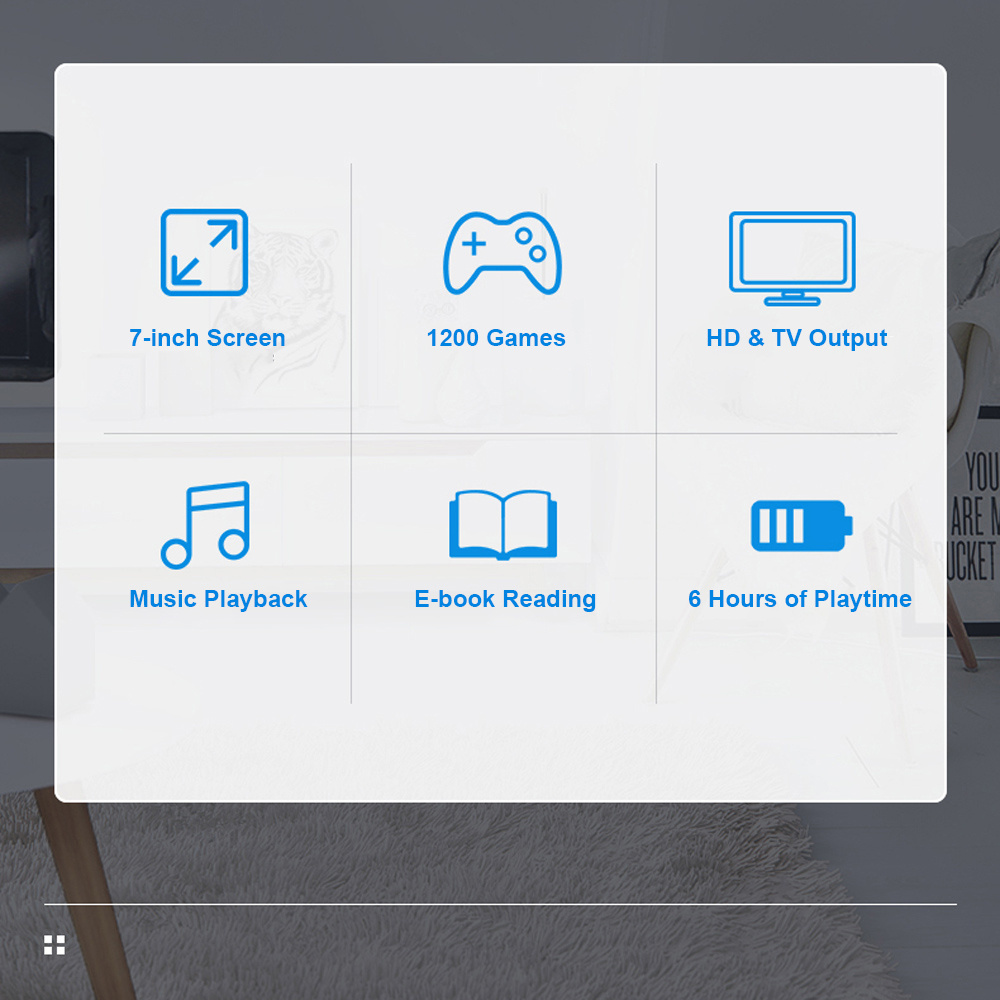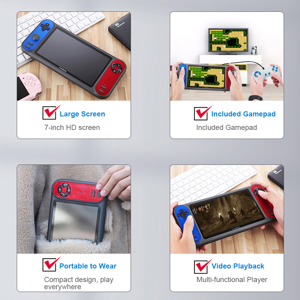 • Комплектация 1 * игровая приставка 1 * Зарядный кабель 1 * HD кабель 1 * 3,5 мм наушники 1 * Руководство пользователя (английский / китайский)
