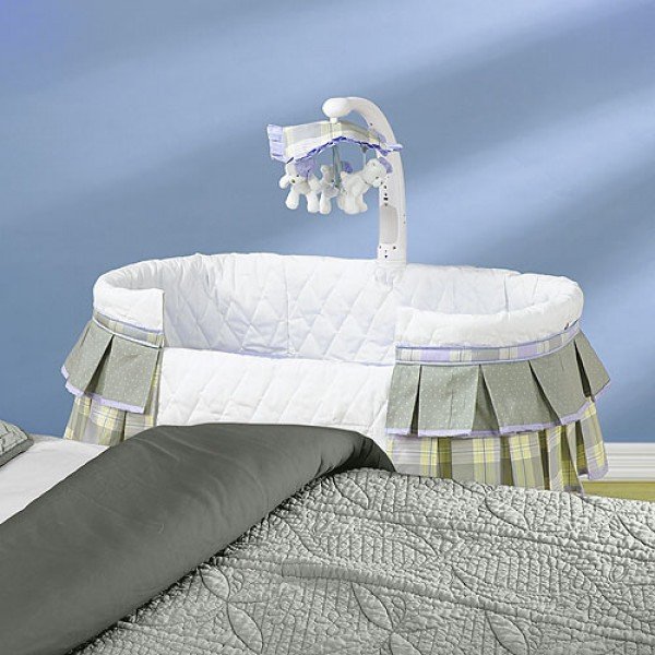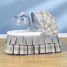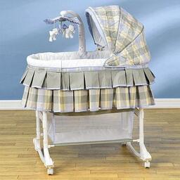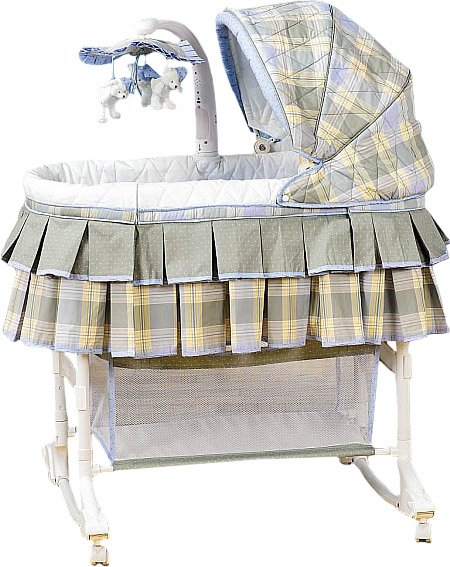 Колыбель, металл, пластик, ткань, 1 уровня дна, механизм качания: полозья, передняя стенка: опускающаяся, ящики 1.