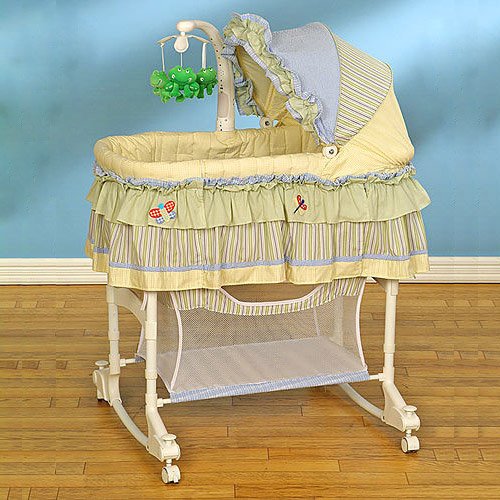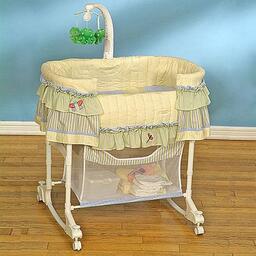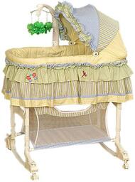 Колыбель, мДФ, пластик, ткань, 1 уровня дна, механизм качания: полозья, передняя стенка: опускающаяся.