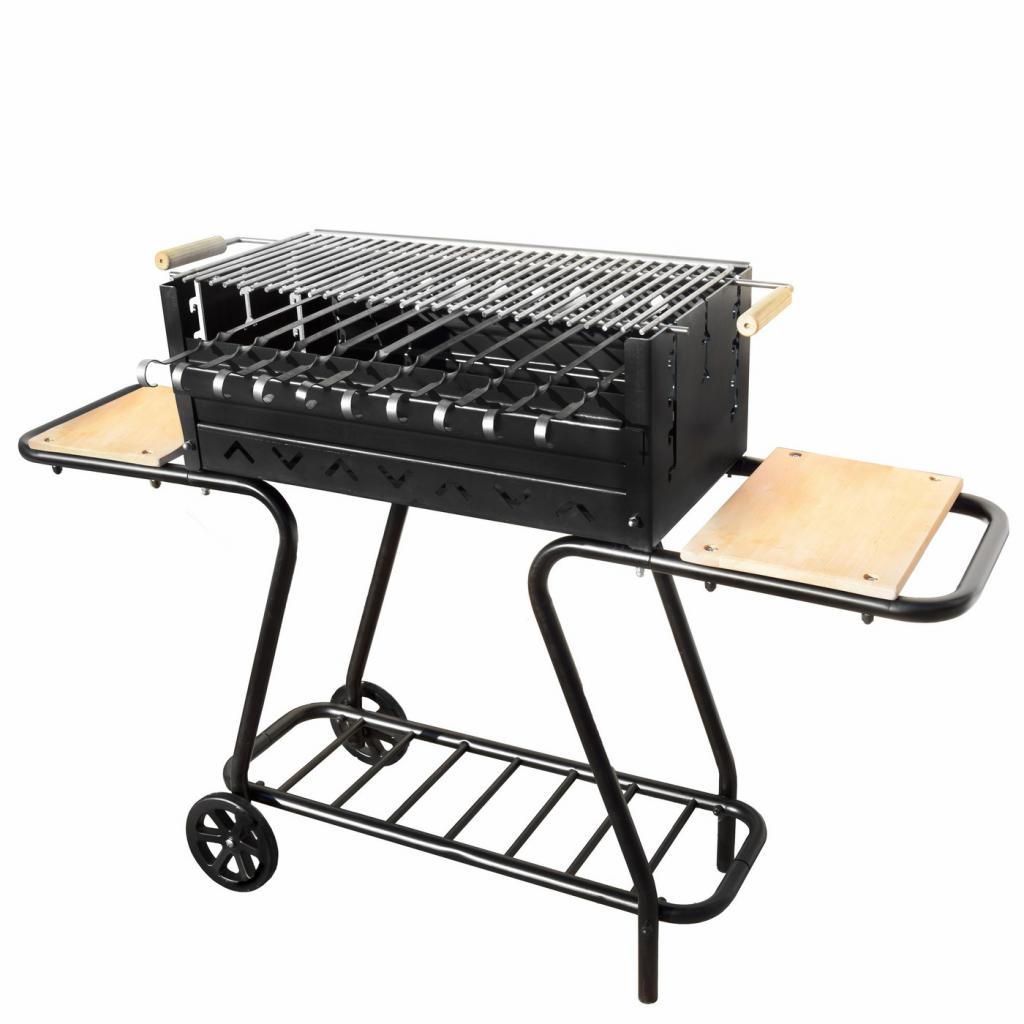 Окрім того, завдяки мангалу VULCAN MAX Вам стануть доступні аристократичні страви на вертелі, адже в ньому передбачені спеціальні отвори для шампура-вертела з можливістю дворівневої фіксації. Також Ви з легкістю зможете зняти бокову панель, що забезпечить вільний доступ до вугілля. Бокові зручні дерев’яні полички-підставки є не тільки важливими функціональними елементами конструкції мангалу, а й довершують його стильний та солідний зовнішній вигляд. Мангал обладнаний колесами із надміцного АБС-пластику, які роблять його надзвичайно мобільним та зручним у використанні. Разом з мангалом VULCAN MAX Ви також отримаєте захисну накидку-чохол з цупкої водонепроникної прорезиненої тканини, котрий надійно захистить мангал від впливів зовнішнього середовища в моменти, коли Ви ним не користуєтесь.