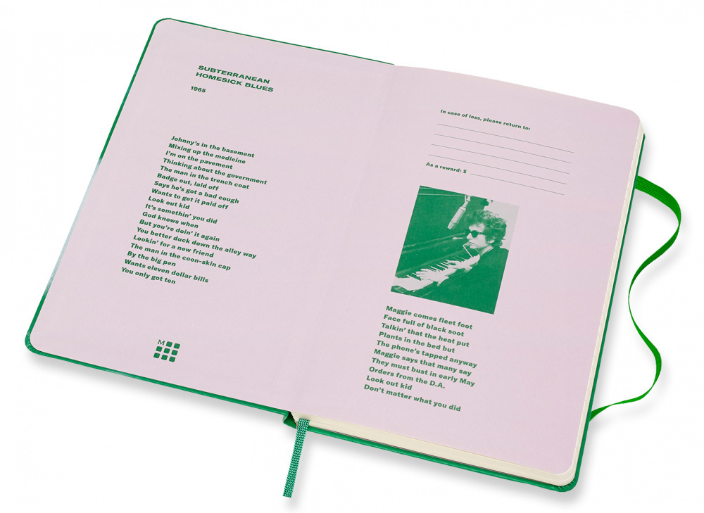 Блокнот Moleskine Limited Le Bob Dylon Large, в линейку, 120 листов, зеленый