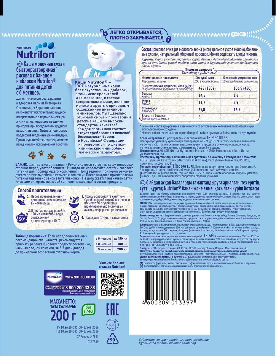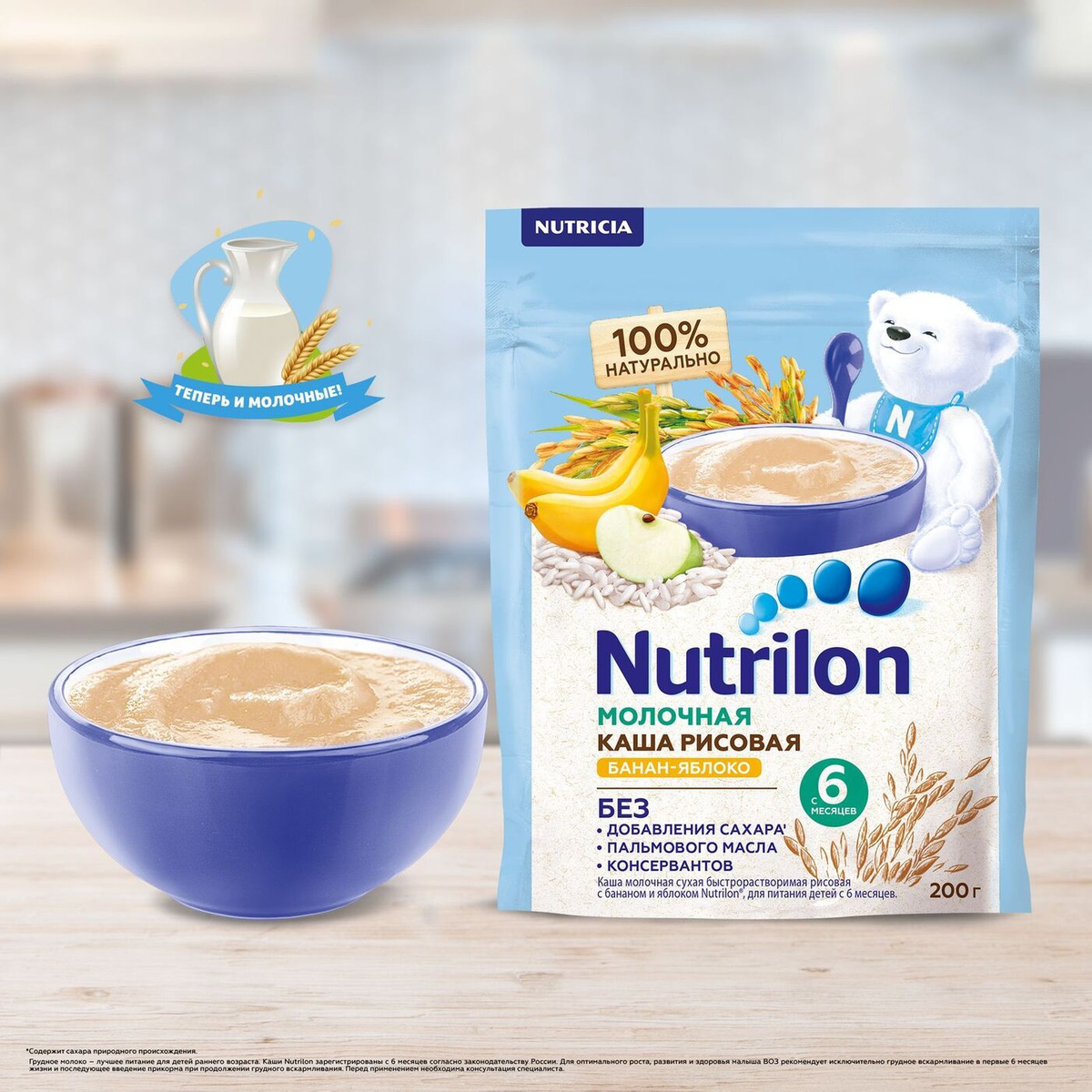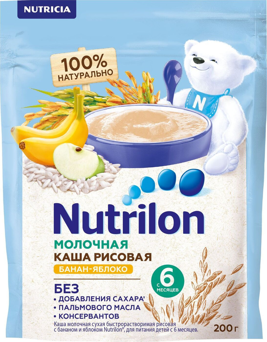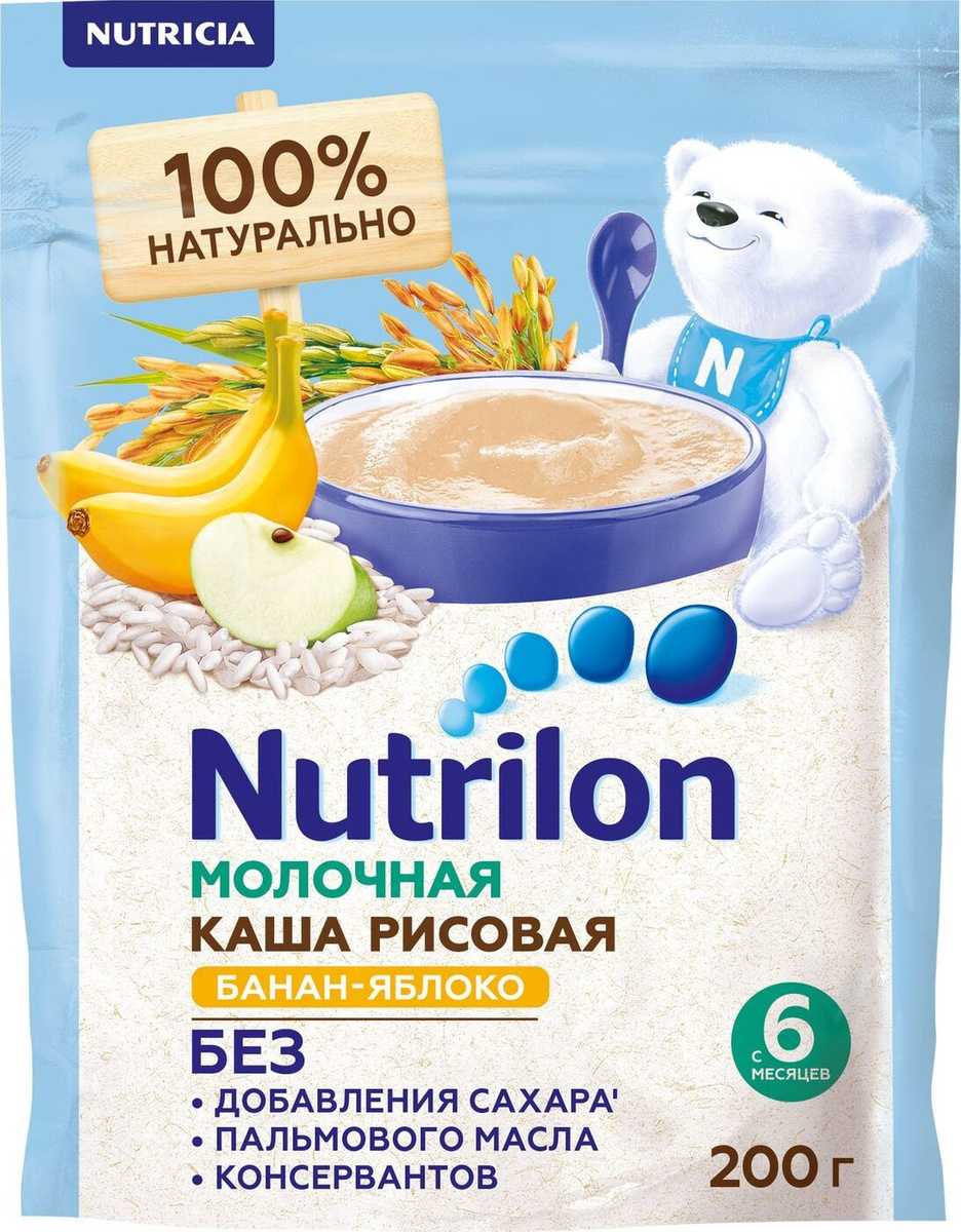 Каша молочная Nutrilon Рисовая, банан-яблоко, с 6 месяцев, 200 г