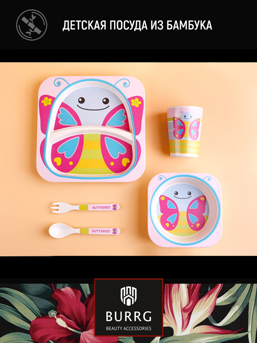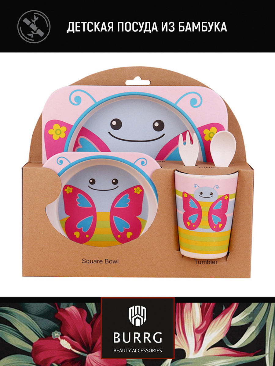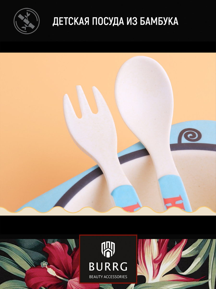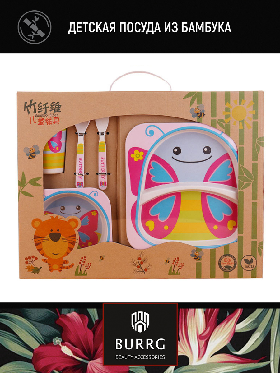 Набор бамбуковой эко-посуды для кормления детей BURRG, 5 предметов