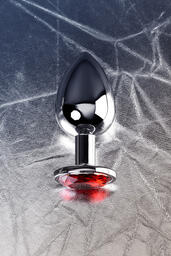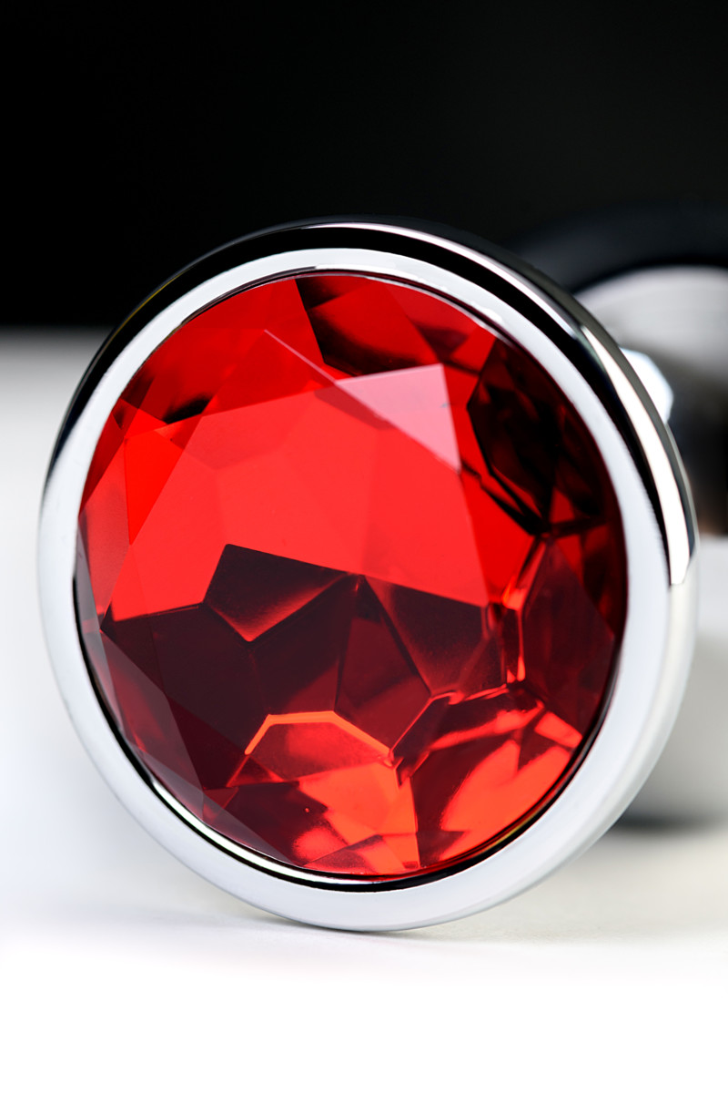 Описание товара Анальная втулка Metal by TOYFA, металл, серебристая, с кристаллом цвета рубин, 9,5 см, ? 4 см, 420 г