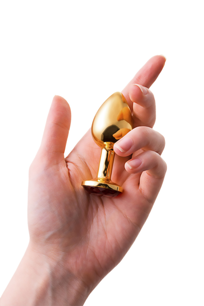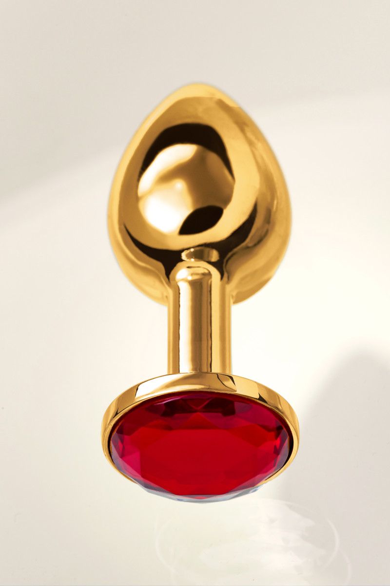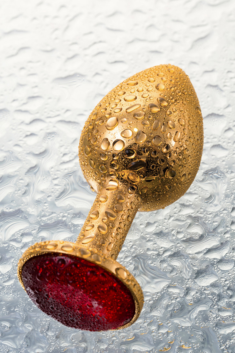 Описание товара Анальная втулка Metal by TOYFA, металл, золотистая, с рубиновым кристаллом, 7,5 см, ? 3 см, 145 г