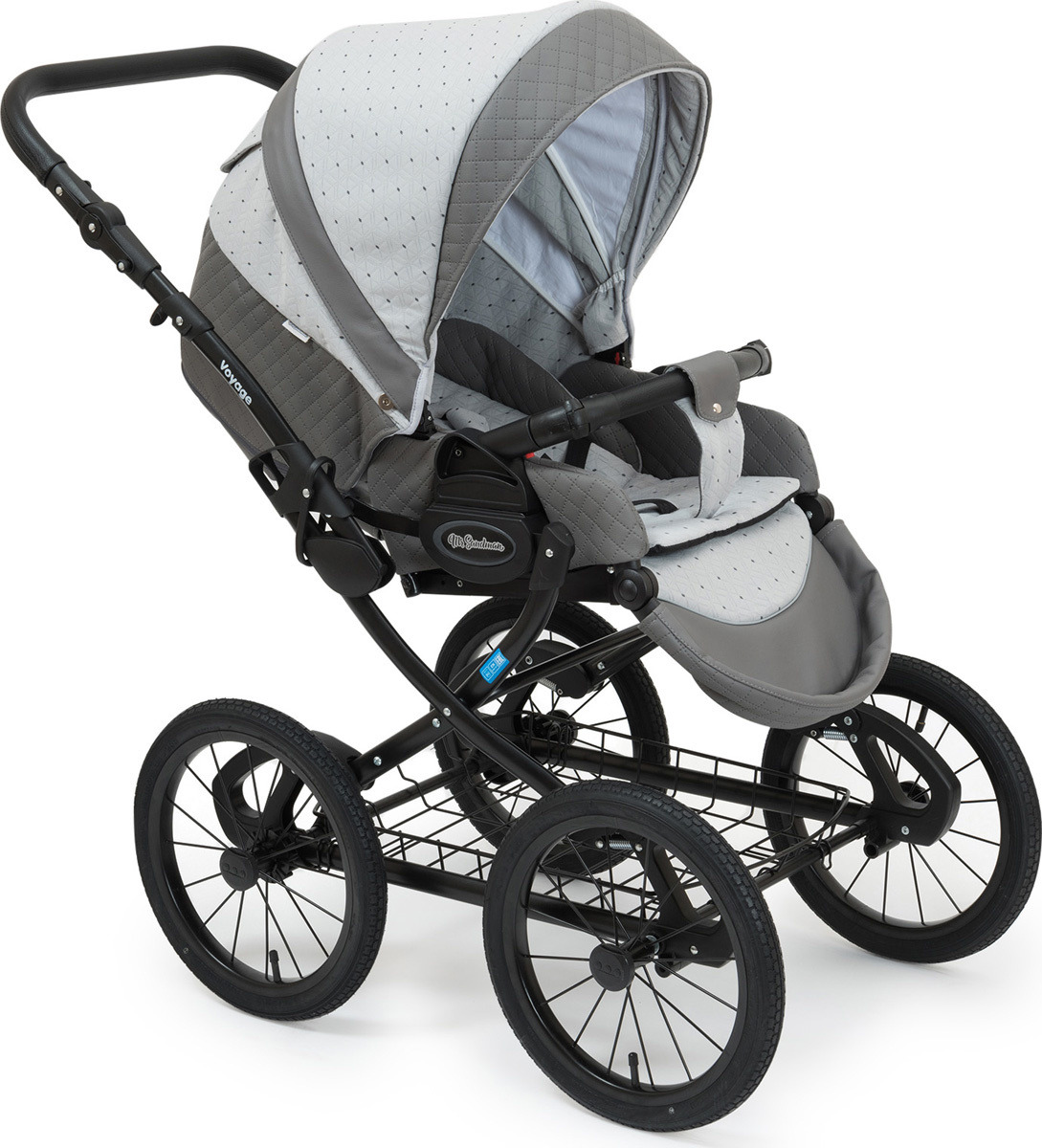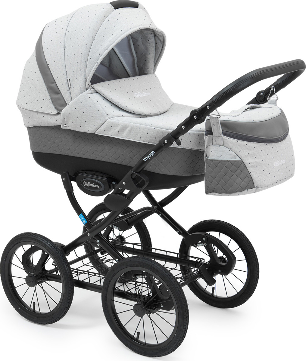 • Комплектация колясок Дождевик, Сумка, Антимоскитная сетка, Накидка на ножки, Люлька, Козырек, Прогулочный модуль, Матрас, Съемный бампер, Корзина для покупок