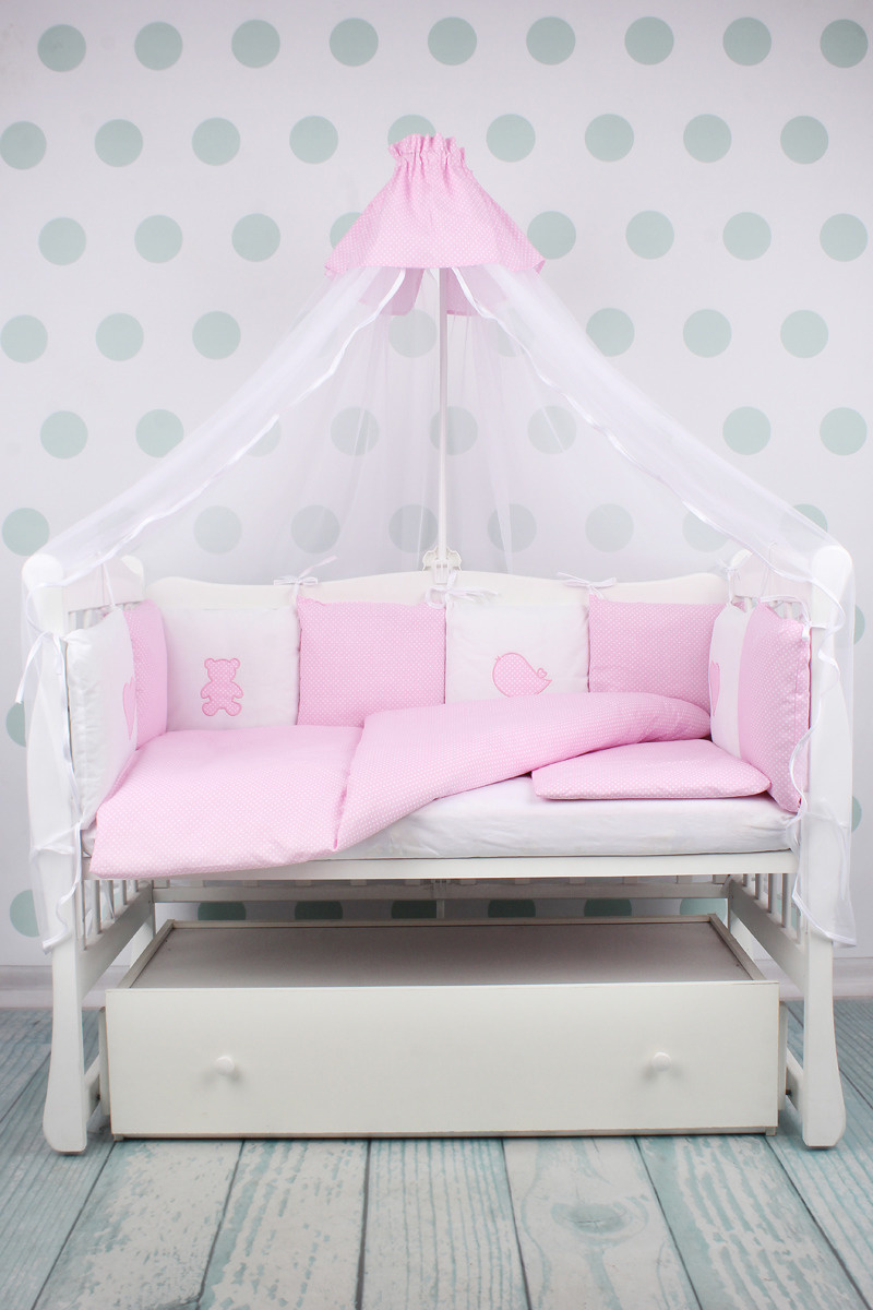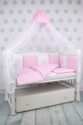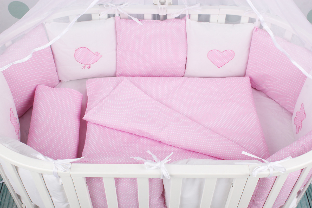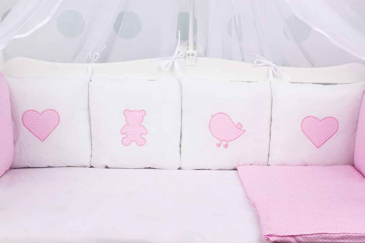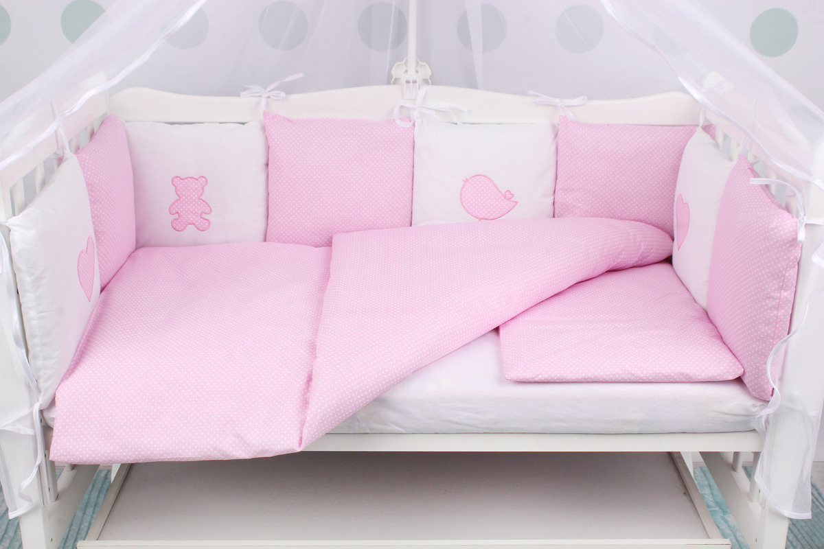 Комплект детского постельного белья 18-и предметный (6+12 бортиков) AmaroBaby КРОХА Premium (розовый)