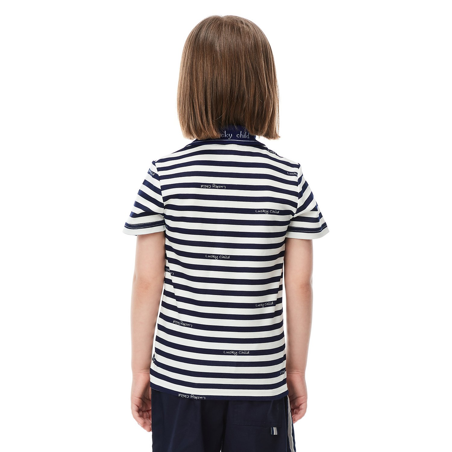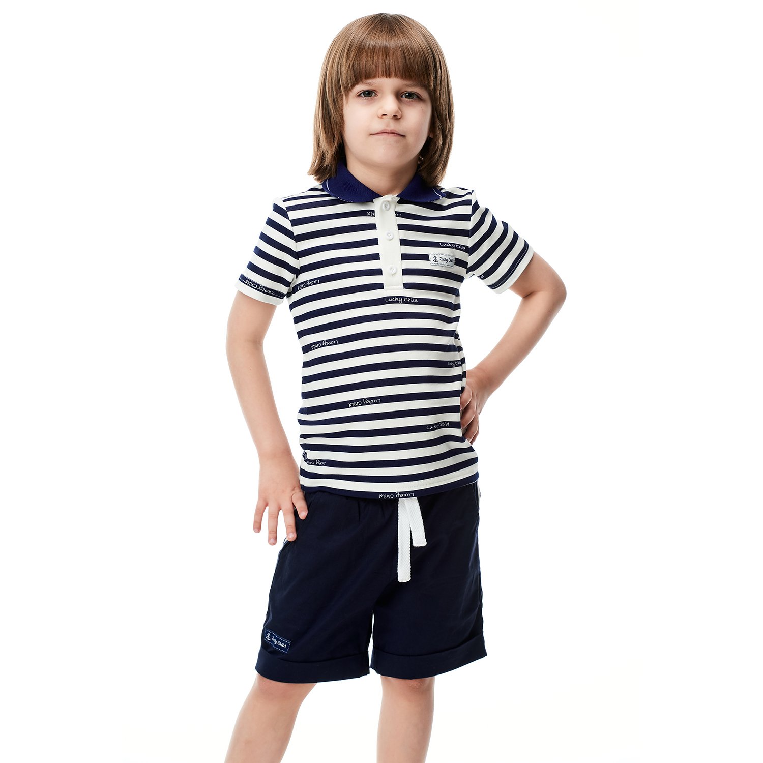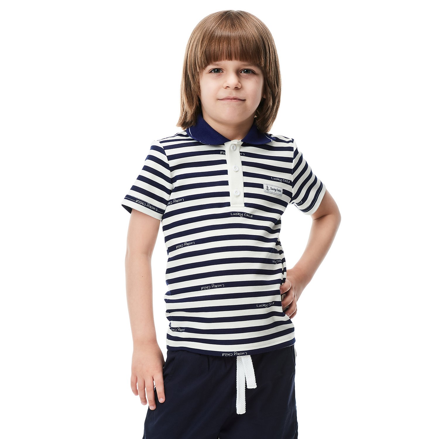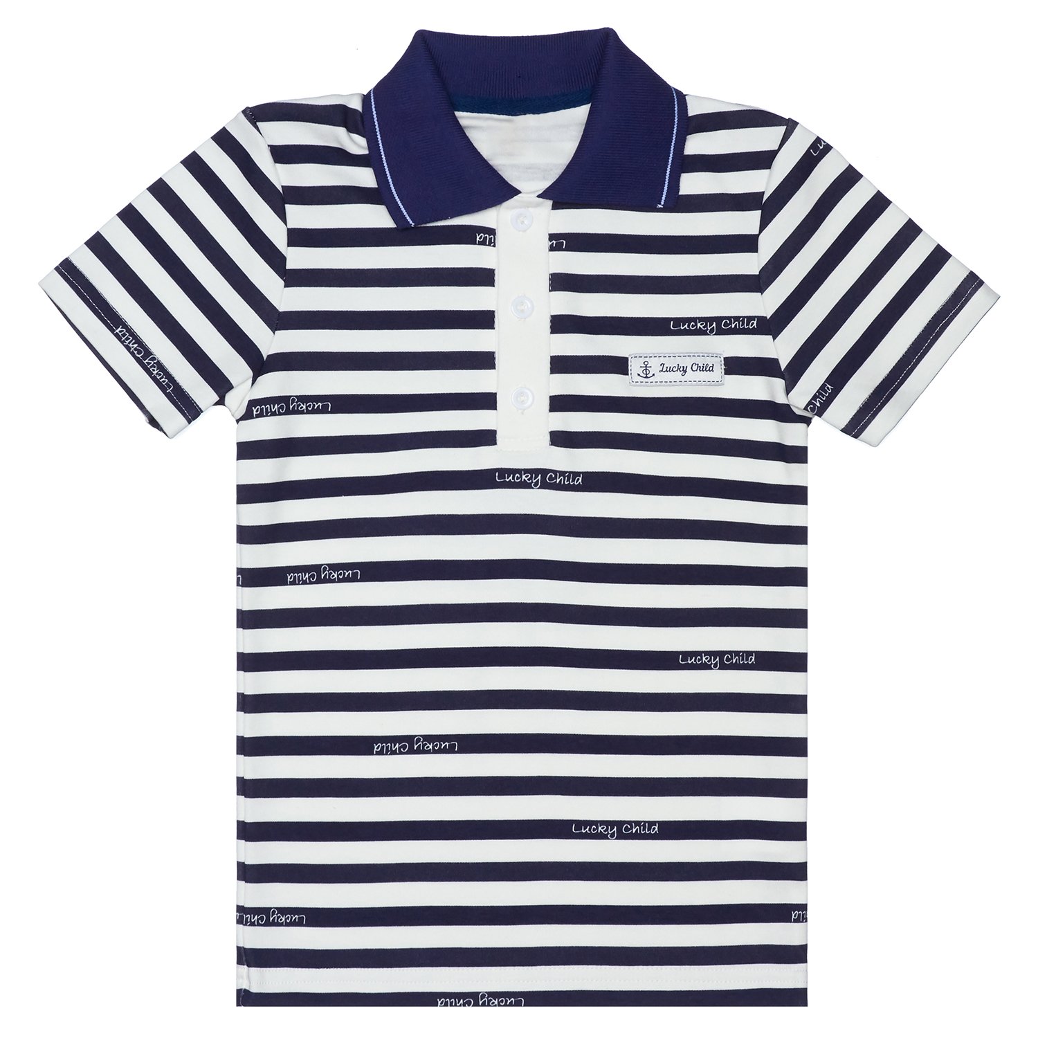 Футболка-поло Lucky Child молочная 79-40/2-7/полоска