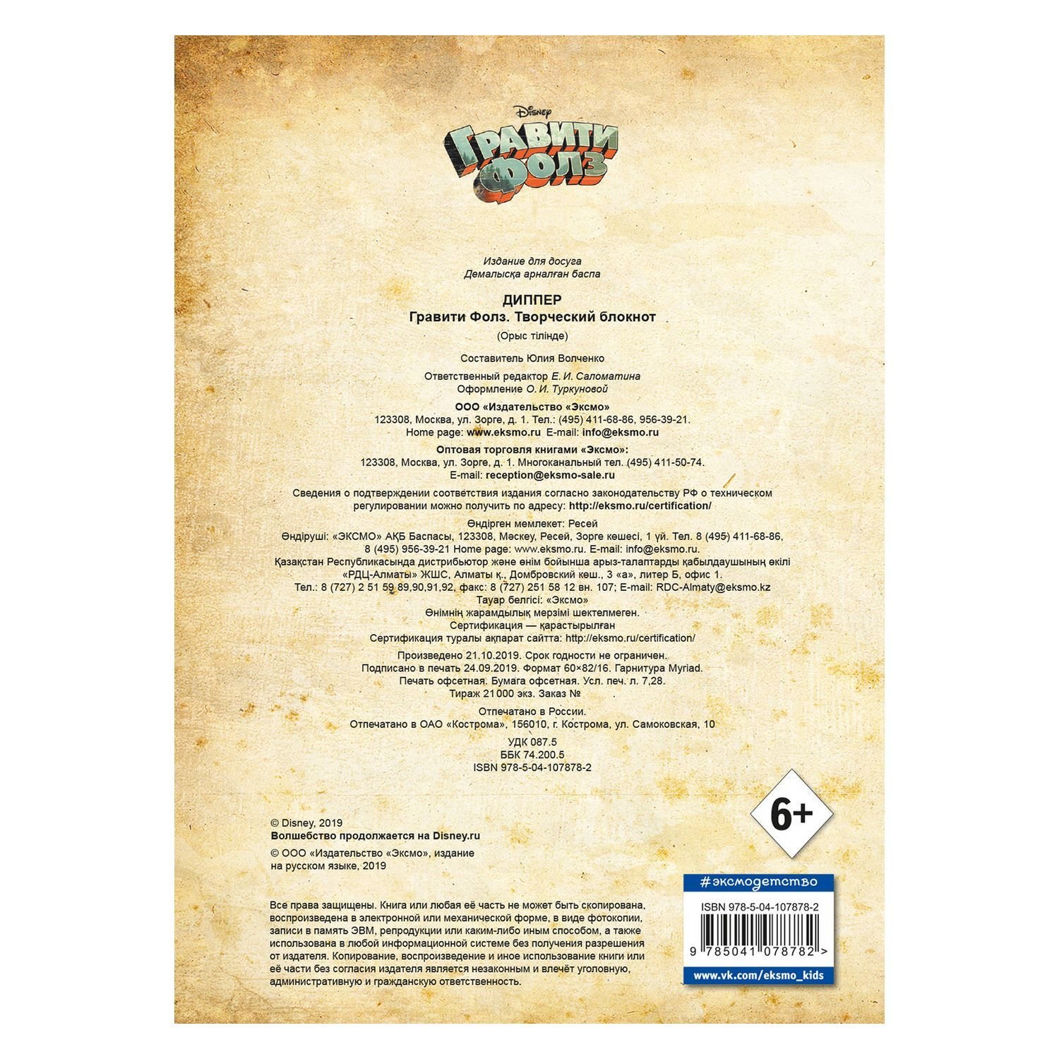 Книга Эксмо Гравити Фолз Творческий блокнот Диппер 978-5-04-107878-2