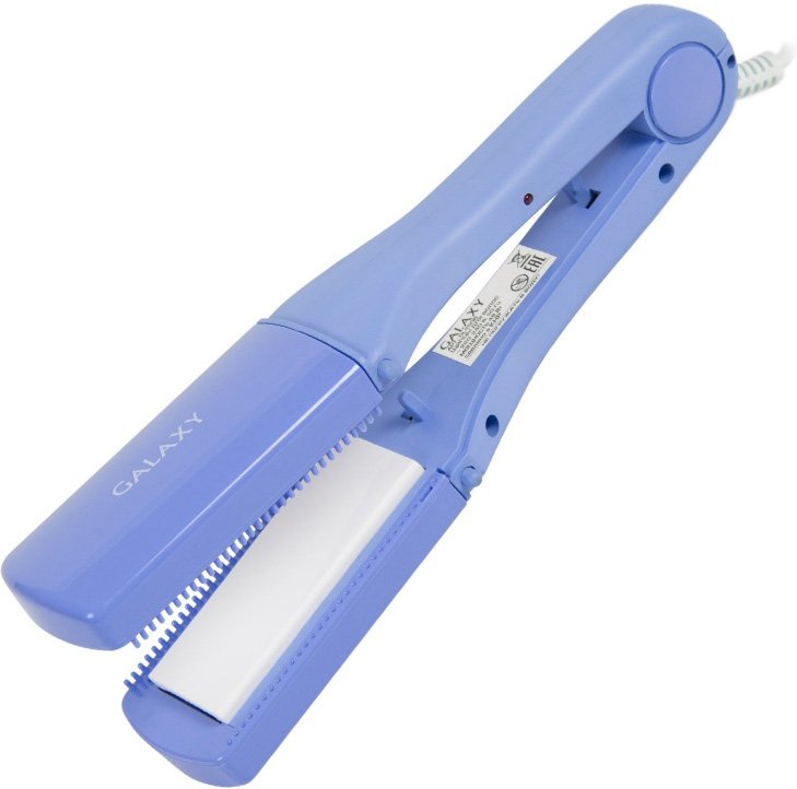 Щипцы для волос. Мощность: 48 Вт. Максимальная температура 180°С. Нагревательный элемент с защитой от перегрева. Сменные керамические пластины ( гофре и гладкие). Индикатор сети. Шнур питания, вращающийся на 360°.