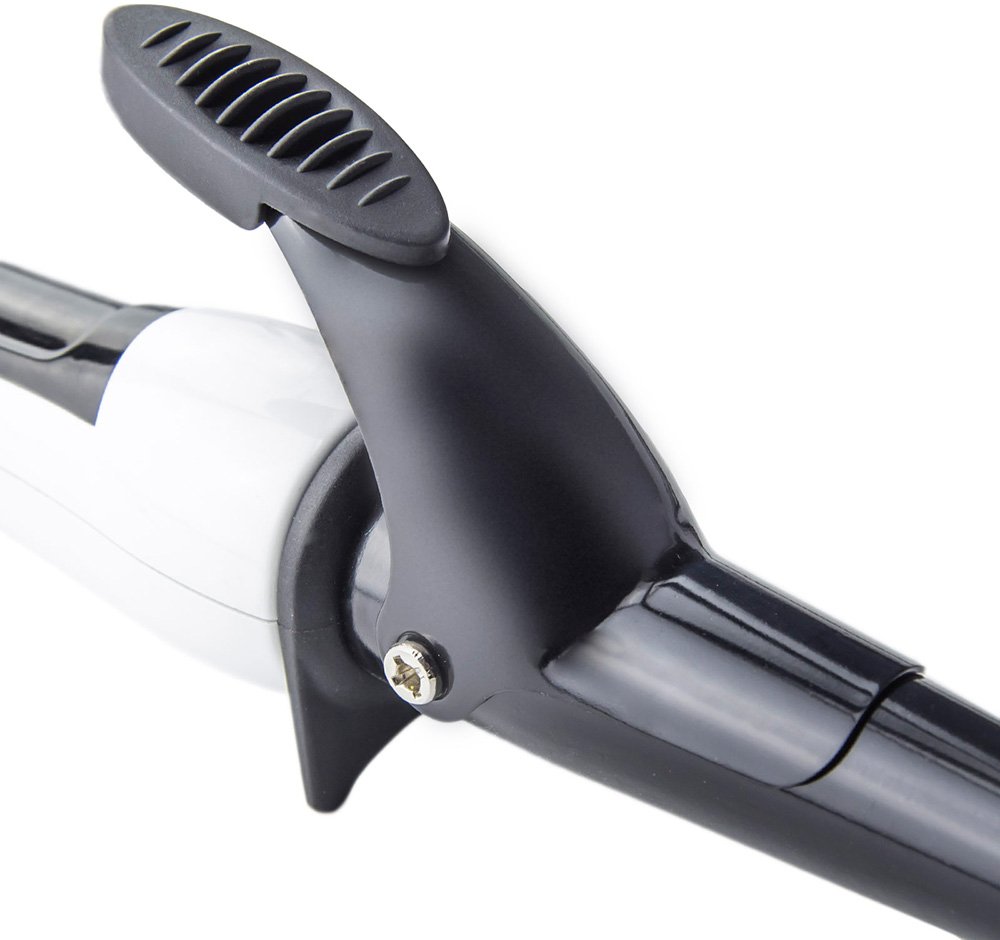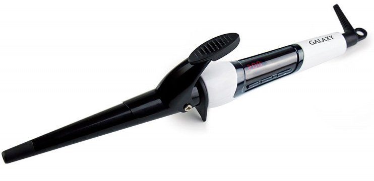 Плойка для укладки волос. Мощность: 45 Вт. Максимальная температура: 200 °С. Нагревательный элемент с защитой от перегрева. Керамическое покрытие рабочей поверхности. Диаметр нагревательного элемента: 13-25 мм. Жидкокристаллический дисплей с индикацией температурных режимов (120°С-200°С). Автоматическое отключение (через 30 минут). Вращающийся на 360° шнур питания, с подвесной петлей.