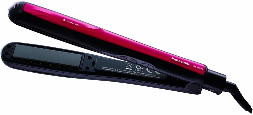 Выпрямитель для волос. Пластины с керамическим покрытием. Быстрый нагрев. Регулировка температуры в диапазоне 150-200 °C (5 ступеней). LED дисплей с индикацией температуры. Технология сохранения влажности nanoe care. Автоотключение через 60 мин. Фиксация пластин в закрытом состоянии. Вращающийся шнур. Длина шнура: 2.7 м.
