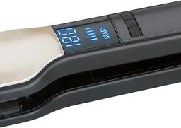 Электрощипцы плойка мощностью 65 Вт. Материал рабочей поверхности: турмалин. Температурные режимы: 120-220 °C. Регулировка температуры: 11 режимов. Индикатор работы готовности к работе и температурного режима. Функция ионизации. Дисплей LCD. Подставка. Вращающийся шнур. Петля для подвешивания.