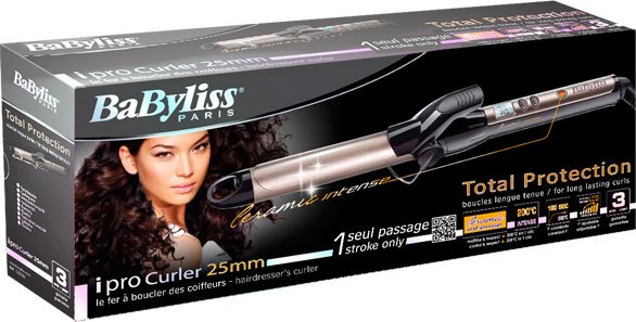 Щипцы для завивки с керамическим покрытием. Максимальная температура: 200°C. ЖК дисплей. Электронная регулировка температуры: 100-200°C. Время нагрева: 180 сек. Поддержание температуры. Не нагревающийся наконечник. Встроенная подставка. Диаметр: 25 мм.