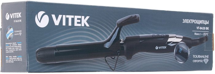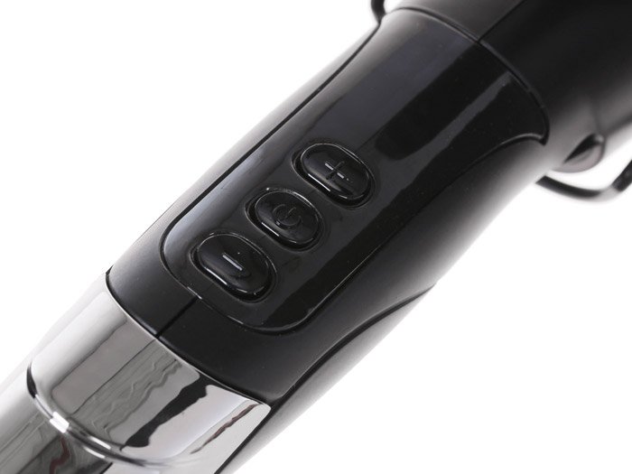 Щипцы для завивки волос мощностью 44 Вт. Диаметр: 25 мм. Покрытие насадок: керамика/турмалин. Индикация включения и готовности к работе. 19 режимов нагрева: 120-210 °C. LED дисплей. Защита от перегрева. Автоотключение через 60 мин. Термоизолированный наконечник. Встроенная подставка. Вращающийся шнур длиной 1.8 м. Петля для подвешивания.
