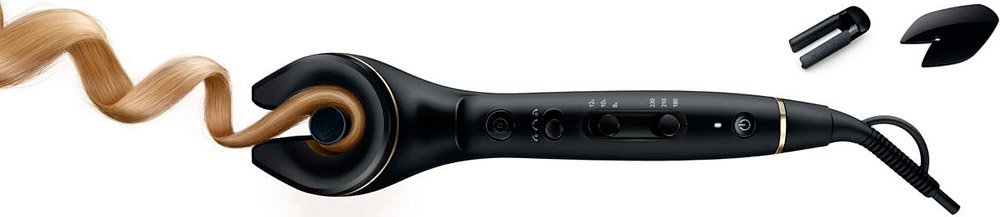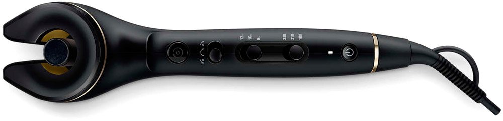 Автоматические щипцы для завивки волос. Профессиональный бесщеточный мотор. Титаново-керамическое покрытие рабочей камеры. Индикация включения и нагрева. Быстрый нагрев (30 сек). Регулировка направления укладки (направо/налево/авто). 3 температурных режима: 180, 210, 230 °C. 3 варианта настройки времени (8, 10 и 12 сек) со звуковым сигналом для создания различных типов локонов.
