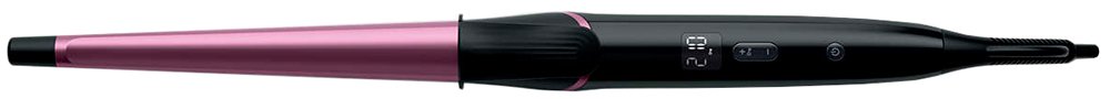 Плойка. Керамико-кератиновое покрытие. Конический корпус 13–25 мм. 9 цифровых настроек температуры. Температурный диапазон 130 °C – 210 °C. ЖК Дисплей. Длина шнура 1,8 м. Быстрый нагрев, готовность к использованию через 45 секунд. Индикация включения. Функция блокировки кнопок. Функция автоотключения. Ненагревающийся наконечник. Петля для подвешивания.