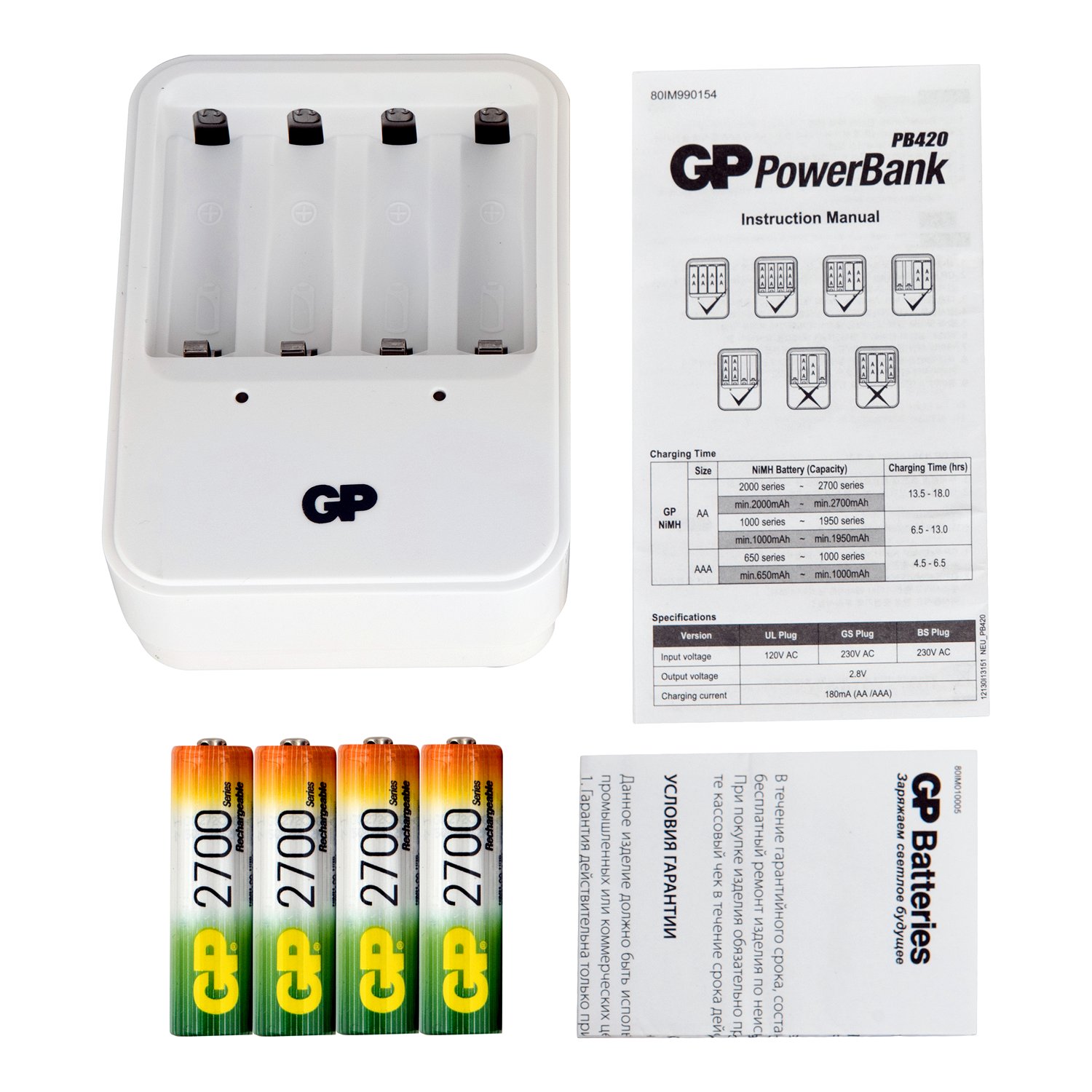 Набор GP Зарядное устройство PB420 и 4 аккумулятора АА (LR6) (PB420GS270AAHCF-CR4) GP PB420GS270AAHCF-2CR4