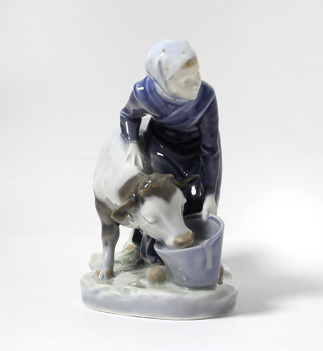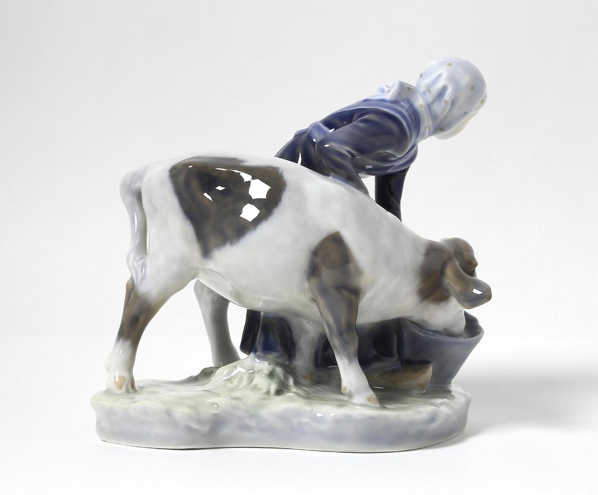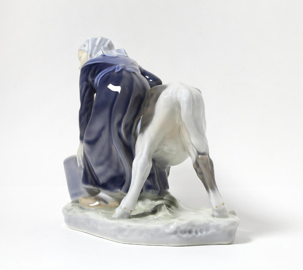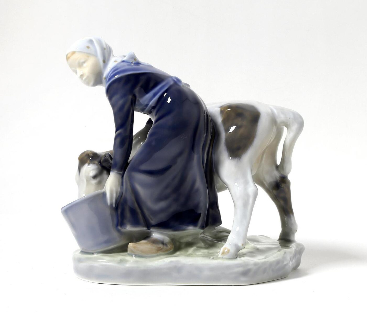 Фарфоровая фигура "Девушка кормит телёнка" Дания, город Копенгаген, Royal Copenhagen.