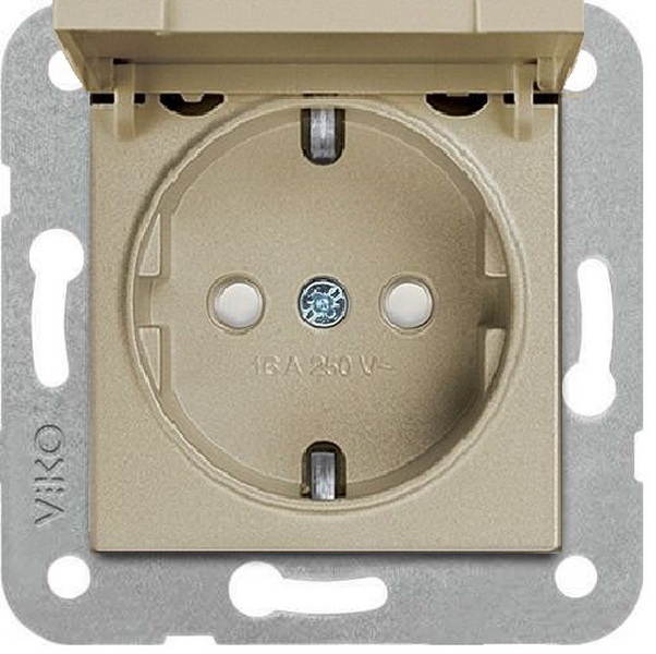 Узел розетки 1-гнездной, с заземлением, с крышкой, для скрытой установки. Без рамки.
