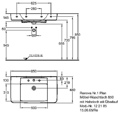 Умывальник Keramag Renova Nr.1 Plan 122185000 85x48 подвесной